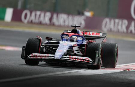 小雨の降る中、好走するRB・ホンダRBPTの角田裕毅(撮影・神子素慎一)