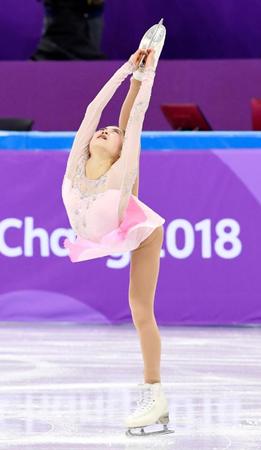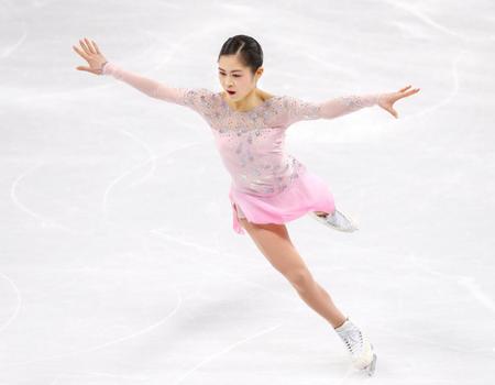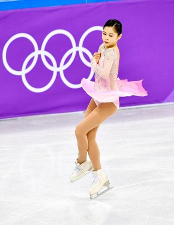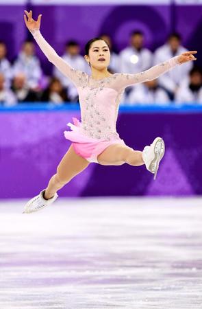 団体女子SP ジャンプする宮原知子=江陵(共同)