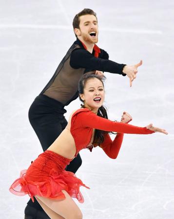 団体アイスダンスSD 演技する村元(左)、リード組=江陵(共同)
