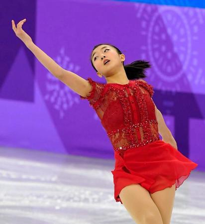 団体女子フリー 演技する米国の長洲未来=江陵(共同)