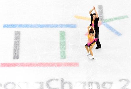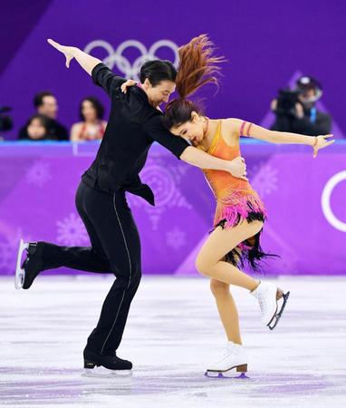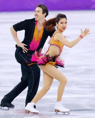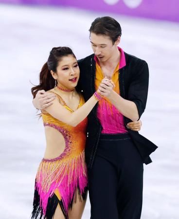 アイスダンスSD 演技する村元(右)、リード組=江陵(共同)