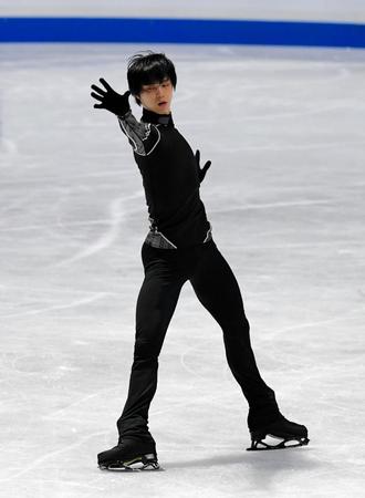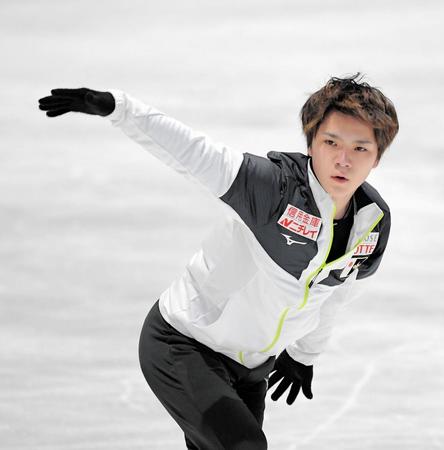 フリーに向けて公式練習で調整する宇野昌磨=さいたまスーパーアリーナ(撮影・堀内翔)