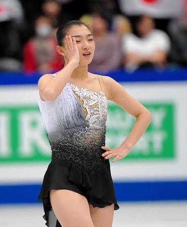 フリー演技を終えた坂本花織=さいたまスーパーアリーナ(撮影・堀内翔)