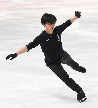 公式練習で調整する宇野昌磨=グルノーブル(共同)