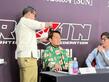 13位に入り笑顔であいさつする横山由依