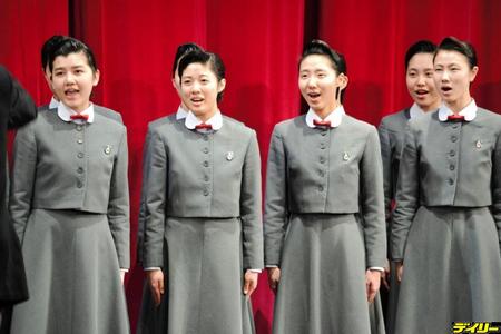宝塚音楽学校「104期生文化祭」でコーラスを披露する105期生の松岡恵さん(左から3番目)=宝塚バウホール