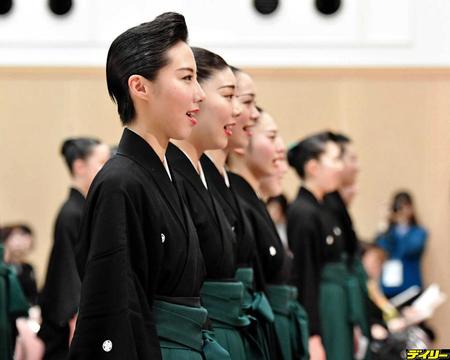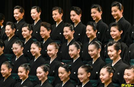 記念写真に収まる松岡恵ら宝塚音楽学校宝塚音楽学校105期生=宝塚音楽学校(撮影・持木克友)