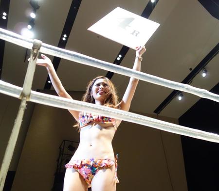 ファイナルステージに向けてラウンドガールを実演する木村静香さん
