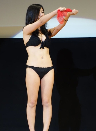ファイナルステージに向けてラウンドガールを実演する水野希空さん